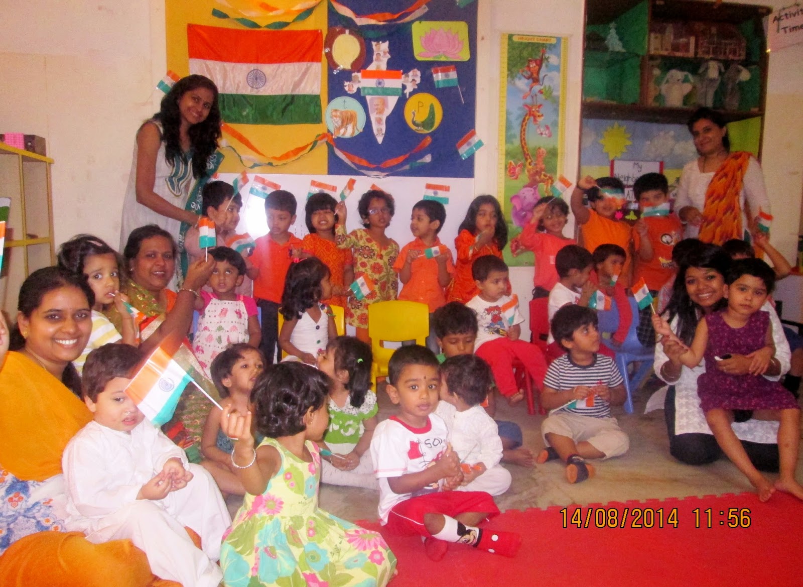 At Oi Playschool Banjara Hills, Independence Day was celebrated with Children and the staff coming in Tri color outfits.
